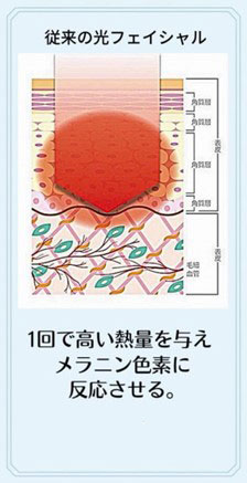 やわらかな光エネルギーを毛包に蓄積させる、全く新しい脱毛方法です。